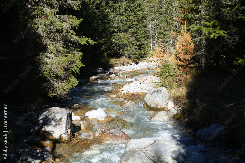 landscape nature photogrpahy of the river running through the swiss national park - parc naziunal svizzer - Schweizerischen Nationalpark - val Trupchun