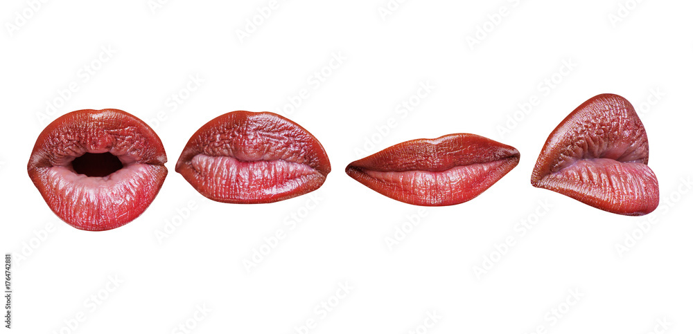 Mouth Icon. Sexy female lips with red lipstick isolated on white. Beautiful young women. Seductive lady mouth open, red lips.