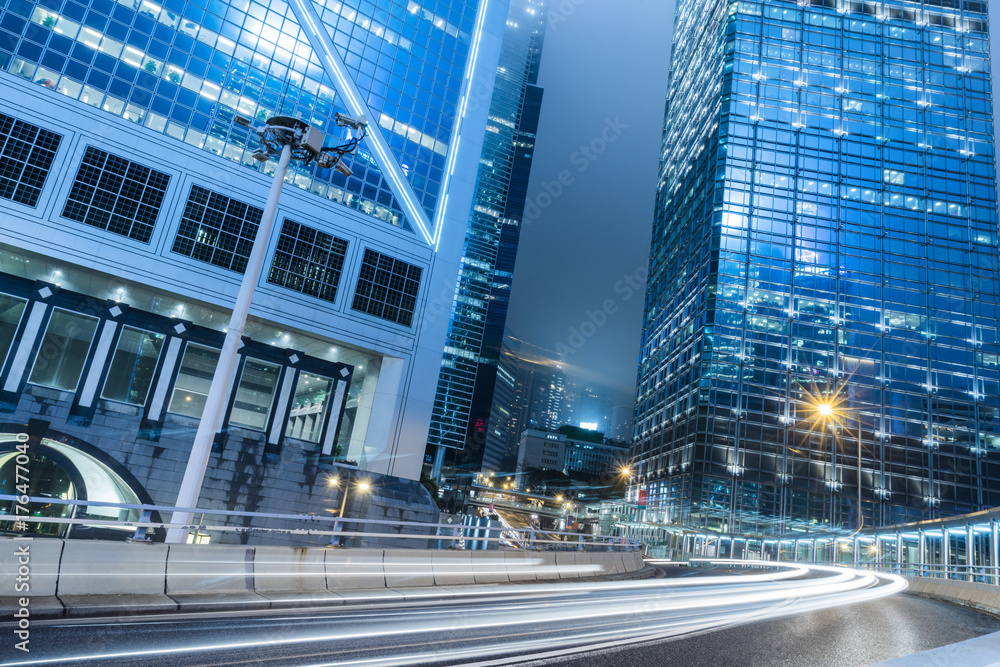 traffic trails in downtown hong kong,china,asia.