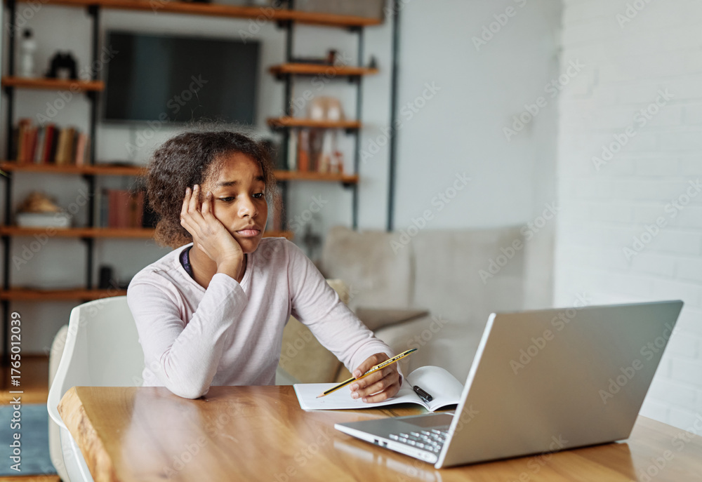 Mother and daughter doing homework with laptop fighting and arguing over learning at home. Motherand teenage daughter girl using laptop. Girl and mom mum sitting at home working with notebook, girl b