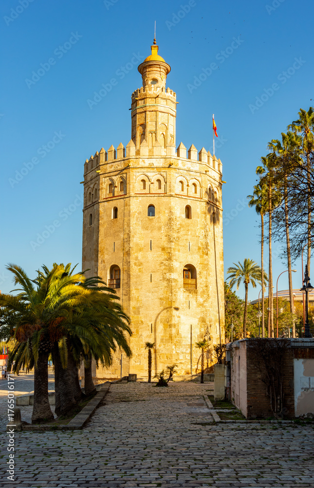 Tower of Gold (Torre del Oro) on Guadalquivir river embankment, Seville, Spain