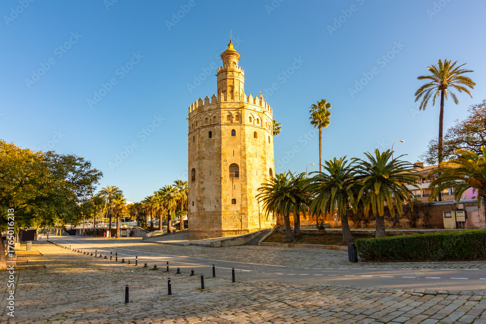 Tower of Gold (Torre del Oro) on Guadalquivir river embankment, Seville, Spain