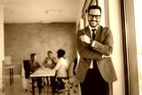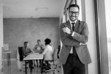 Multicultural professional businesspeople working together on research plan in boardroom.