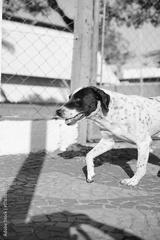 dog walking by himself on street
