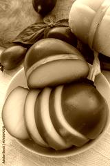 Cheese collection, white and smoked yellow italian scamorza cheese