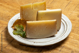 Pieces of hard matured Italian cheese pecorino made from sheep's milk, old cheeses of Italy