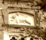 Tourists destination, historical part of Bergamo city, Bergamo Alta with narrow streets, churces, old houses, located on hill with fortress walls, Lombardy, Northern Italy
