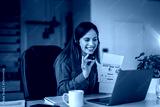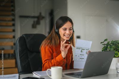 Woman presenting business data during online video call