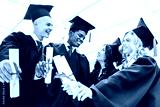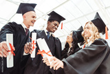 multiethnic students showing diplomas