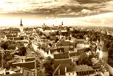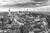 Aerial panorama of Old town with Town hall and Toompea hill, view from the tower of St. Olaf church, Tallinn, Estonia