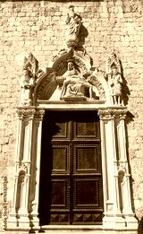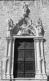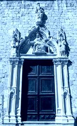 Pieta sculpture adorning Franciscan Monastery portal in Dubrovnik