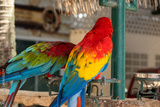 Colorful parrots in a tropical garden nature vibrant environment close-up view