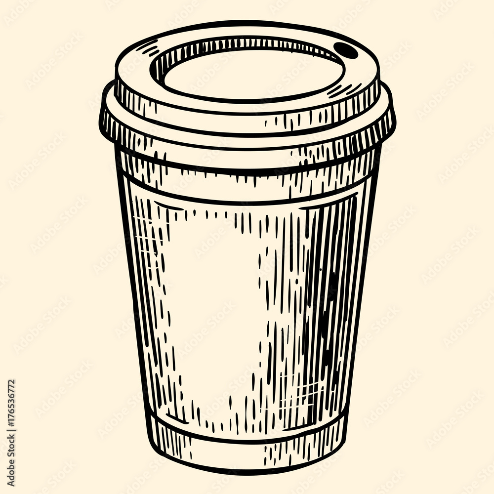 Cardboard coffee cup. illustration in sketch style. Illustration in sketch style.