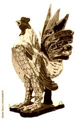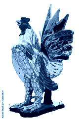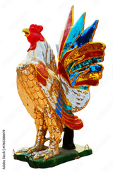 Colorful The chicken statue at the temple or shrine is a Thai belief in good luck