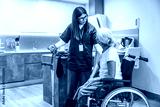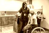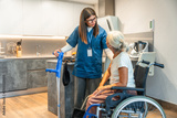 Caregiver assisting senior woman with mobility and home care