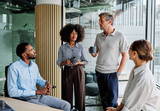 Group of young businesspeople having a meeting or presentation and seminar standing in the office. Portrait of a young businesswoman talking