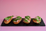 Bruschetta mit Tomaten und Knoblauch auf der Schieferplatte