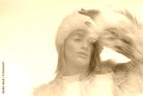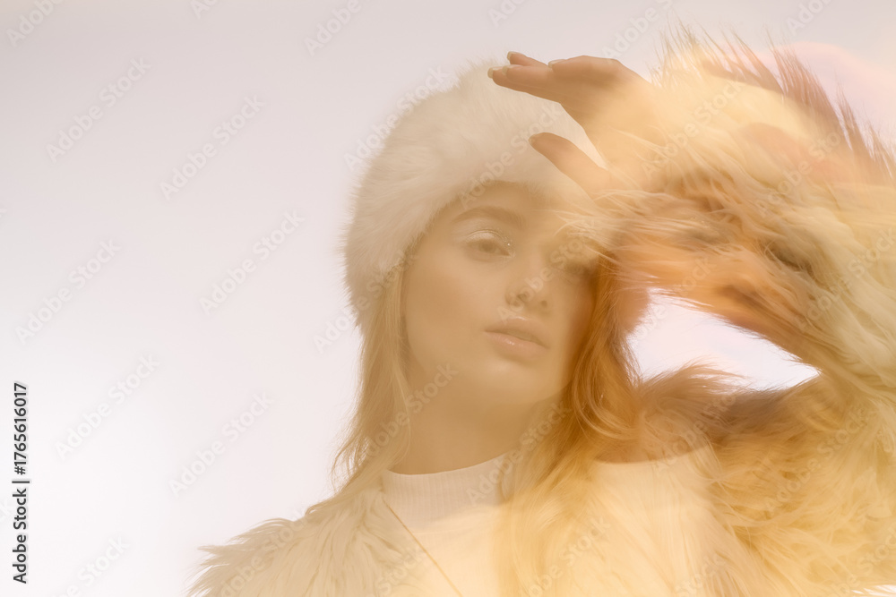 Winter glamour with a beautiful blonde woman in cozy knitted attire