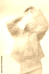 Young blonde woman adds warmth to winter in a cozy knitted outfit
