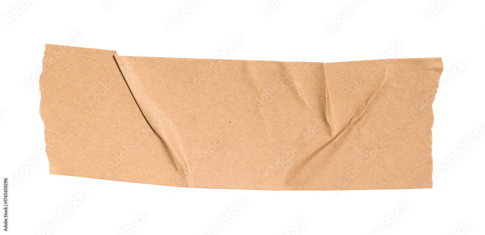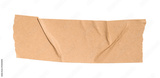 Brown craft paper washi tape piece with crumpled texture, torn edges, isolated transparent design background, a providing element