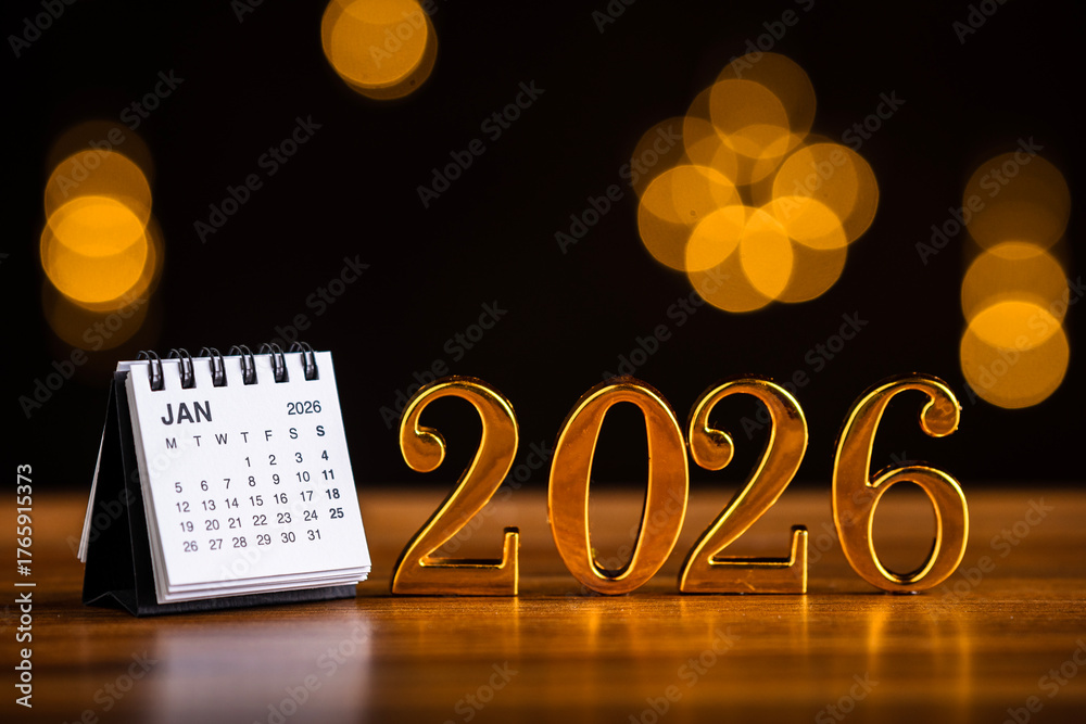2026 January special days concept image, Close up of 3D 2026 numbers next to a January calendar page
