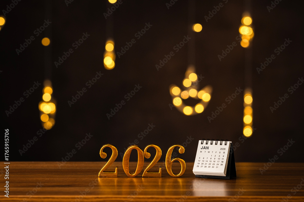 January 2026 calendar with 3D numbers and warm bokeh lights in the background, New year goal and special days concept image
