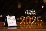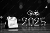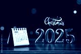 2025 merry Christmas greeting image , Close up of December calendar page with 2025 numbers