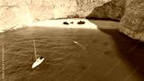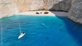 Aerial drone photo of one of the most photographed beaches in the world called navagio or shipwreck a ship rest to rust ashore vanishing through the years, Zakinthos island, Ionian, Greece