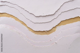 textured watercolor paper with torn edges arranged in step form on wood