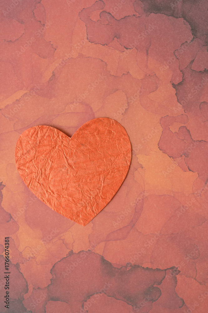 textured rustic orange heart on brown orange dark ink scrapbook paper (halftone print)