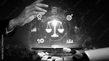 Futuristic digital law interface displaying justice scale, highlighting digital law, AI compliance, digital law systems, and digital law regulations for secure governance. Muxer