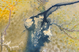 Emission of pollution by sewage from the city fall into the lake,Water pollution, environmental problems.