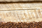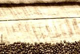 coffee beans on wooden table top view
