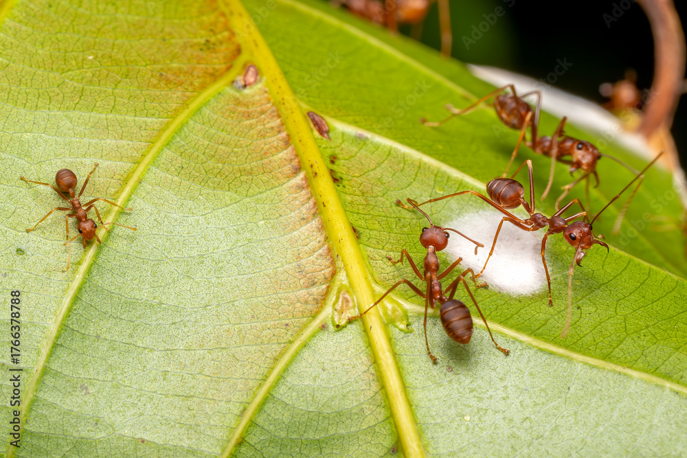 Green Tree Ant - Oecophylla smaragdina, small common ant native to the forests and bushes of Southeast Asia and Australia, Vietnam.