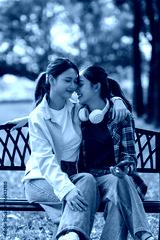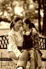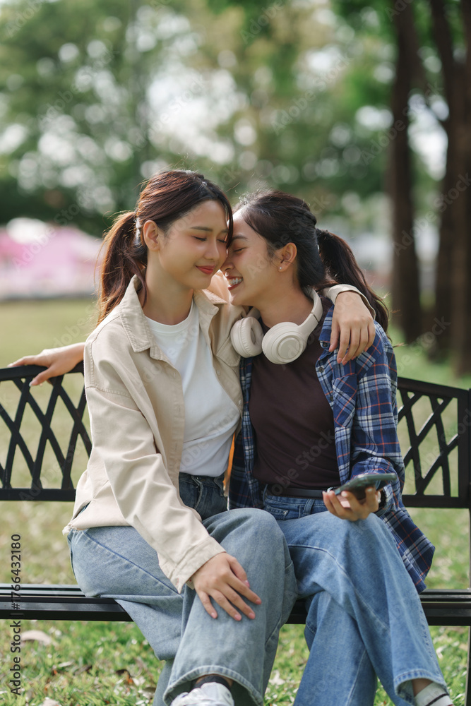 Young asian women sharing intimate affectionate moment
