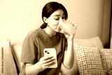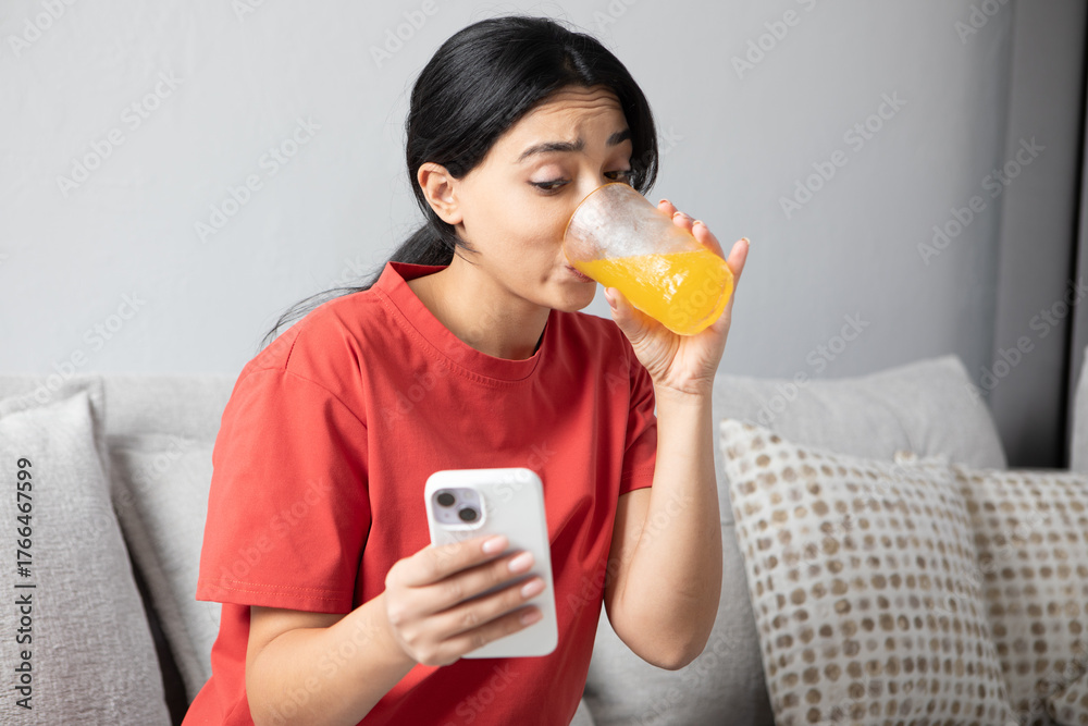 The woman drinking juice