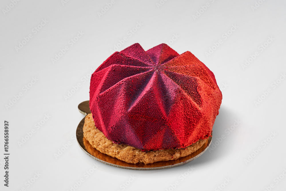 Monoporcja, deser, ciastko artystyczne na jednolitym tle