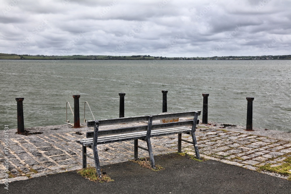 Kilteery Pier, fishing place in Loghill, County Limerick, Republic of Ireland. Rainy weather in summer.