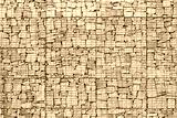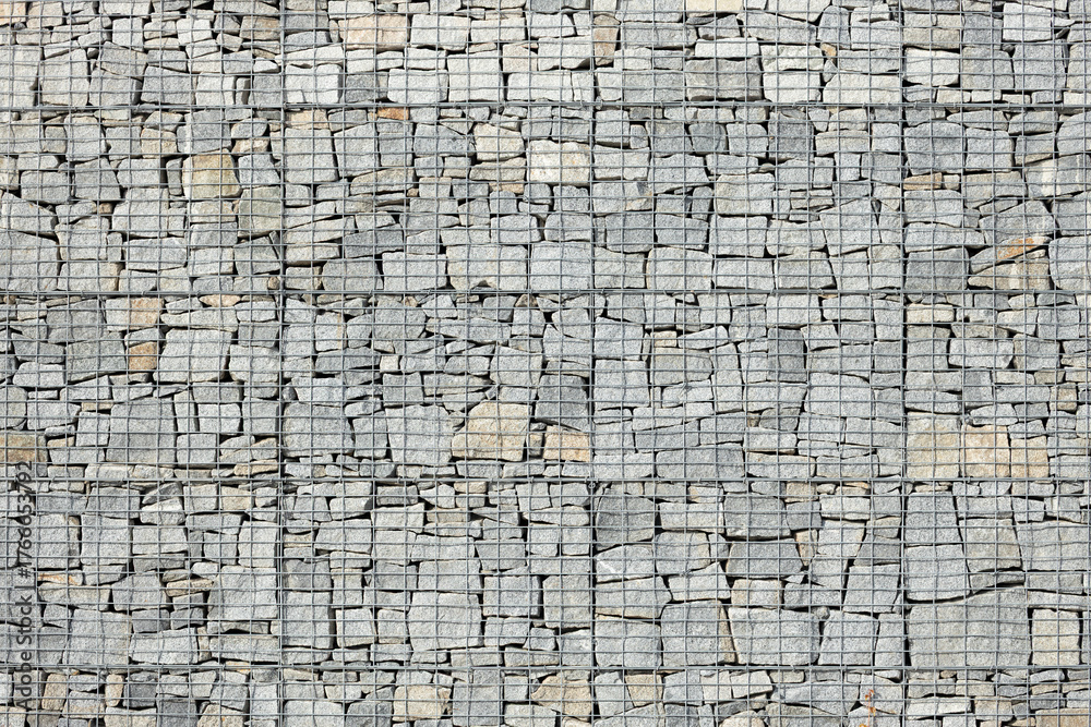 Textured stone wall composed of irregularly shaped gray stones arranged in a grid pattern, showcasing natural variations and earthy tones, ideal for architectural and design projects