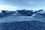 Heavy and mobile machinery in a quarry to transform stone into construction material