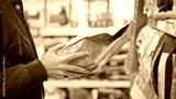 A woman choosing dry pet food in a store, holding a package in her hands and deciding which one to buy. Concept of consumer choice, responsible pet owner and healthy nutrition for cats or dogs.