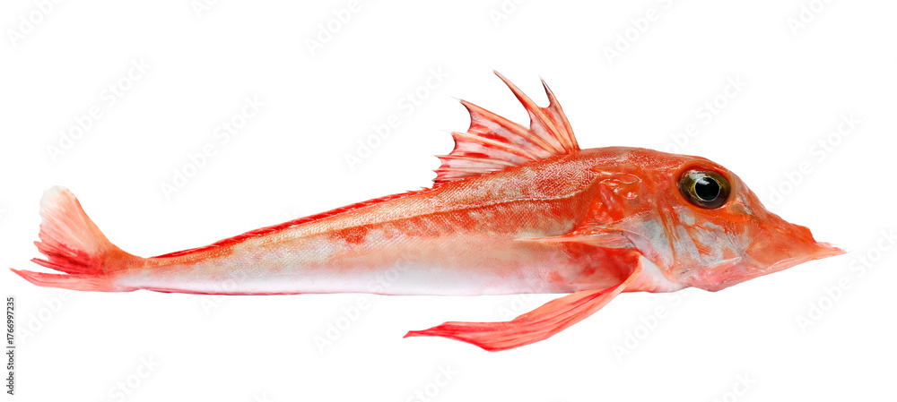 Piper gurnard, Trigla lyra, isolated on white, side view