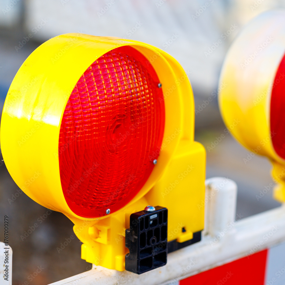 Yellow Construction Light on Barrier
