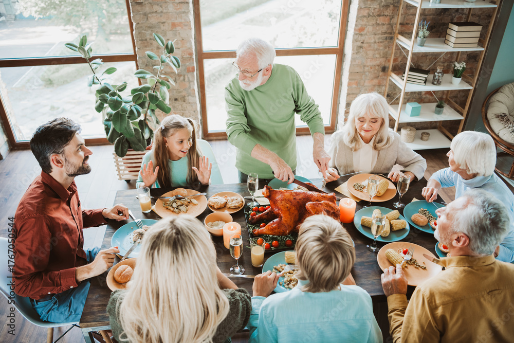 A lively family gathering around a festive thanksgiving table sharing food and laughter at a sunny home