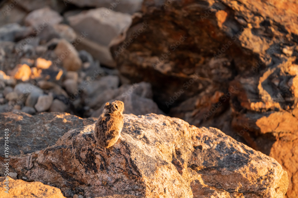 Pika Stands Guard On Large Rock and Warms In The Sun