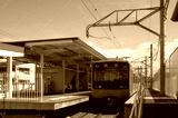 Orange Iyotetsu Train at Mitsu Station, Matsuyama, Ehime Prefecture, Shikoku, Japan