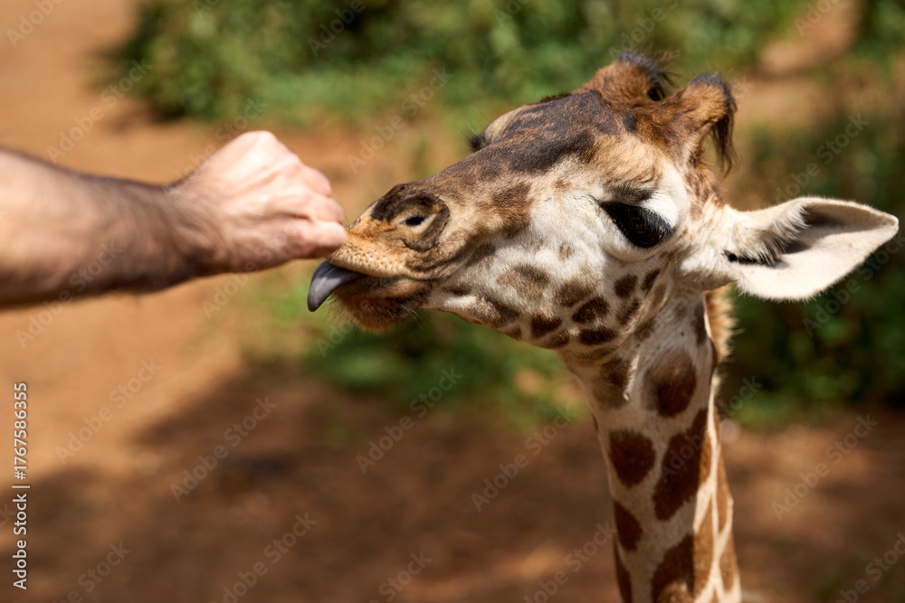 Nairobi, Kenya - October 18th 2025 - Giraffe Center, Hand Feeding a Giraffe