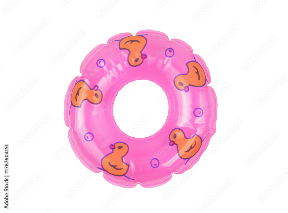 Pink inflatable ring for swim isolated on white background.