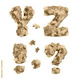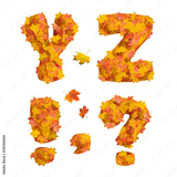 Set of huge autumn alphabet letters: Y, Z and punctuation marks.