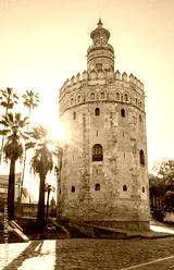 Tower of Gold (Torre del Oro) on Guadalquivir river embankment, Seville, Spain